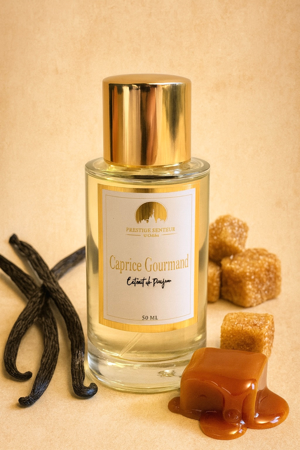 Plongez dans un nuage de douceur avec Caprice Gourmand, un extrait de parfum qui séduira les amateurs de senteurs sucrées et chaleureuses.