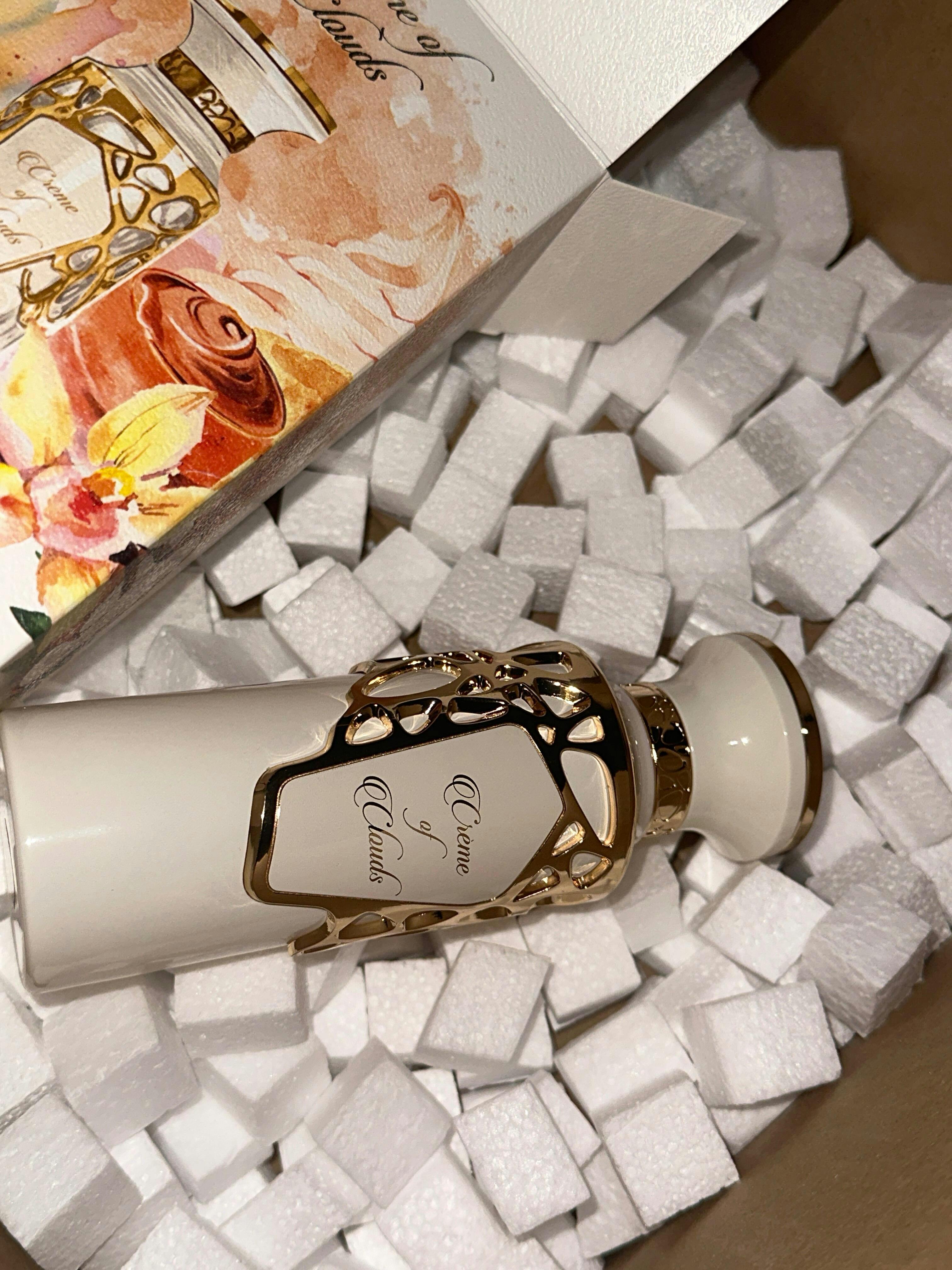 Plongez dans un nuage de douceur avec Crème of Clouds, un parfum ultra gourmand et enveloppant, directement venu de Dubaï. Sa composition irrésistible allie onctuosité, chaleur et sensualité, pour une expérience olfactive aussi addictive qu’un dessert sucré.