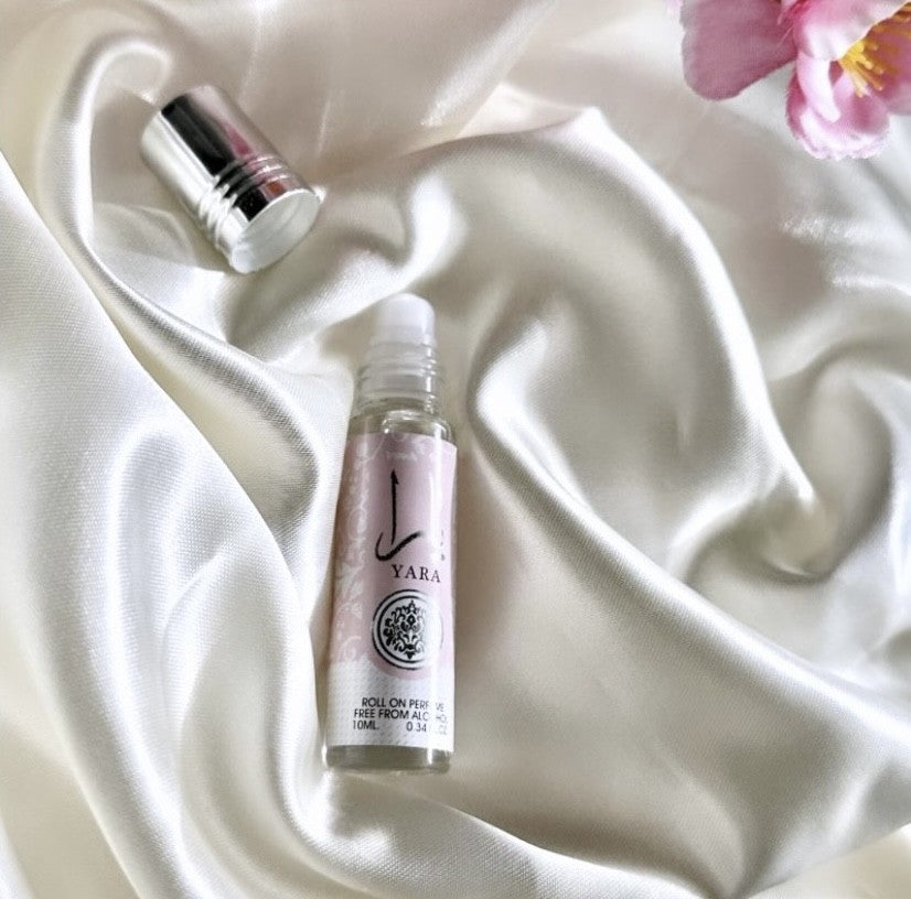 Musc Roll-on sans alcool odeur Yara , mini flaçon pratique pour amener partout avec soi.